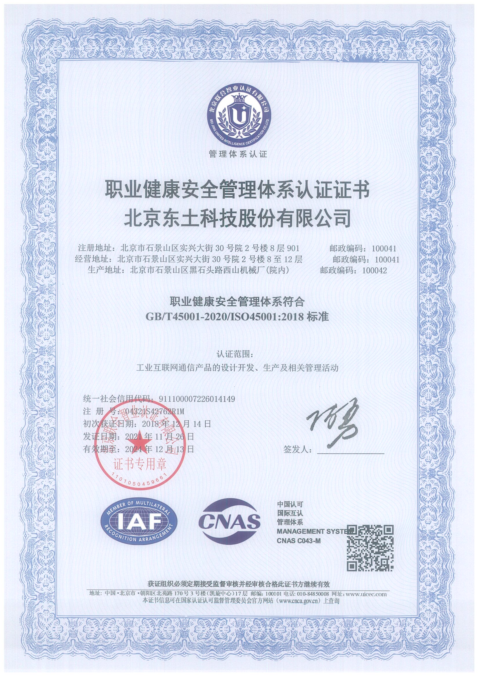 職業(yè)健康安全管理體系證書ISO45001:2018