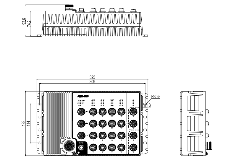 | 機械結構 | 外殼: 金屬 散熱方式: 自然冷卻, 無風扇 防護等級: IP65 尺寸: 189mm×325mm×92.6mm(H×W×D) 重量: 4.25Kg 安裝方式: 壁掛式 |