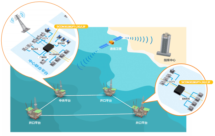 海上油氣開采固定設施長期工作在惡劣、復雜的海洋環(huán)境中, 受到波浪、 腐蝕、 沖刷、 疲勞及其它不利因素的影響,需要穩(wěn)定可靠的系統(tǒng)實時、不間斷的監(jiān)控其運行狀態(tài),網(wǎng)絡系統(tǒng)作為監(jiān)控系統(tǒng)的基礎通信設施,需在相同的環(huán)境中提供穩(wěn)定的數(shù)據(jù)傳輸 服務,網(wǎng)絡設備應具備在寬溫、腐蝕、振動環(huán)境中長期穩(wěn)定工作的能力,為SCADA、視頻、語音等多業(yè)務系統(tǒng)提供高性能的通信支持。
