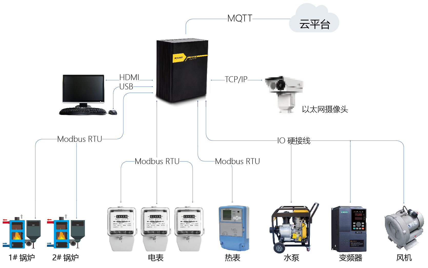 工業(yè)服務(wù)器提供了豐富的接口和協(xié)議。集成常見的Modbus RTU,Modbus TCP, CANopen,EtherCAT, MQTT 等協(xié)議,輕松對接現(xiàn)場各種專用設(shè)備。非實(shí)時(shí)系統(tǒng)提供KyGate 協(xié)議網(wǎng)關(guān),可將工業(yè)服務(wù)器通過KyGate 實(shí)現(xiàn)數(shù)據(jù)上云。支持客戶的網(wǎng)關(guān)應(yīng)用,實(shí)現(xiàn)工業(yè)服務(wù)器對接客戶的云平臺。