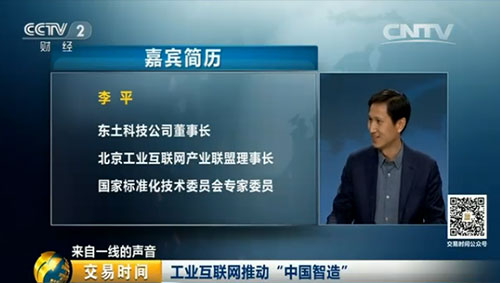 2016年4月18日,東土科技董事長李平先生受邀參加CCTV2《交易時間》節(jié)目,并與中國信息通信研究院總工程師余曉暉先生就什么是工業(yè)互聯(lián)網(wǎng),工業(yè)互聯(lián)網(wǎng)如何推動“中國制造”等問題進(jìn)行了深入探討。