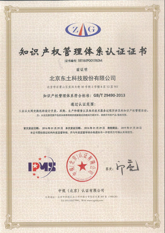 2017年2月27-28日,東土科技以完整規(guī)范的知識(shí)產(chǎn)權(quán)管理流程及卓有成效的實(shí)施,順利通過了中規(guī)(北京)認(rèn)證有限公司審核組的知識(shí)產(chǎn)權(quán)管理體系貫標(biāo)資質(zhì)審核。