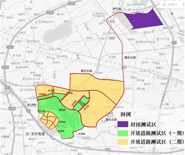 汽車城核心區(qū)的開放道路智能網(wǎng)聯(lián)汽車測試環(huán)境建設(shè)工程總范圍為25km2,本項(xiàng)目為一期工程建設(shè),范圍包含上海國際汽車城核心區(qū)墨玉南路(博園路-安禮路)、安禮路(墨玉南路-北安德路)、北安德路(安禮路-安智路路)、安智路(北安德路-博園路)、博園路(墨玉南路-安智路)、安馳路(墨玉南路-于田南路)、安虹路(博園路-安研路)、安研路(博園路-安虹路)等,總面積約12 km2。
