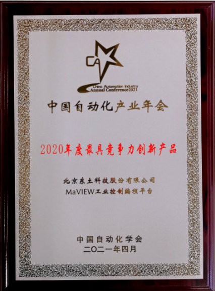 會中,CAIAC2021獎項在同期頒布,旨在銘記和展望中國自動化產(chǎn)業(yè)發(fā)展的歷程,總結(jié)和表彰為其發(fā)展做出重要貢獻(xiàn)的個人、團(tuán)隊與企業(yè),全面展示不斷革新的自動化產(chǎn)品,透徹分析成功的行業(yè)解決方案與應(yīng)用案例,以“公正、公平、公開、專業(yè)”的原則全面展現(xiàn)過去一年里中國自動化產(chǎn)業(yè)的不斷進(jìn)步與閃光點(diǎn)?;顒託v時4個月,經(jīng)過入圍推薦、專家評審、網(wǎng)上投票,最終,東土科技MaVIEW工業(yè)編程平臺成功獲選“年度最具競爭力創(chuàng)新產(chǎn)品”獎項。