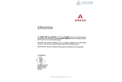 全球最大的核電企業(yè)阿?,m集團(tuán)使用我公司獲得了KEMA認(rèn)證的SICOM3024P系列產(chǎn)品,在電網(wǎng)中使用后產(chǎn)品性能穩(wěn)定、品質(zhì)優(yōu)越,特給我公司頒發(fā)使用合格證書,并將長期使用我公司的產(chǎn)品。阿海琺集團(tuán)在全球43個國家擁有生產(chǎn)設(shè)施,銷售網(wǎng)絡(luò)遍及100多個國家,2008年全球