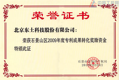 東土科技榮獲石景山區(qū)2009年度專利成果轉(zhuǎn)化獎勵資金