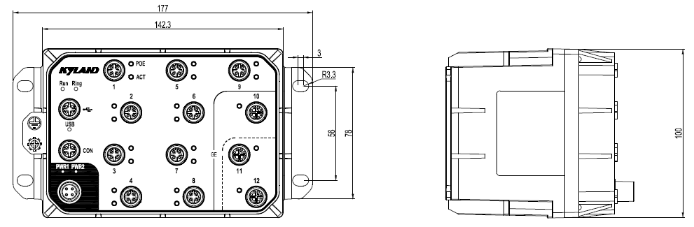 | 接口 | 千兆端口:10/100/1000Base-T(X) - M12 X-coded 接口 Bypass:4個(gè)端口支持2對(duì)Bypass 百兆端口:10/100Base-T(X) - M12 D-coded 接口 PoE:Support IEEE803.2af Support IEEE802.3at Console接口:RS232 - M12 A-coded 接口 告警端子:M12 A-coded 接口 USB接口:M12 A-coded 接口 |