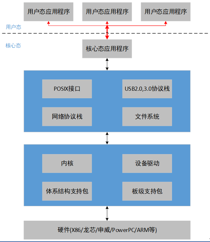 | 設(shè)備驅(qū)動(Driver) | 設(shè)備驅(qū)動(Driver)提供硬件設(shè)備驅(qū)動,針對硬件設(shè)備類型提供配套驅(qū)動支持,將同類設(shè)備驅(qū)動共性部分與板級支持包特性部分進(jìn)行分離,使在多硬件平臺下支持不同型號的同類設(shè)備更為方便、快捷 支持的設(shè)備驅(qū)動包括:網(wǎng)卡,硬盤,USB,PCI,串口 |