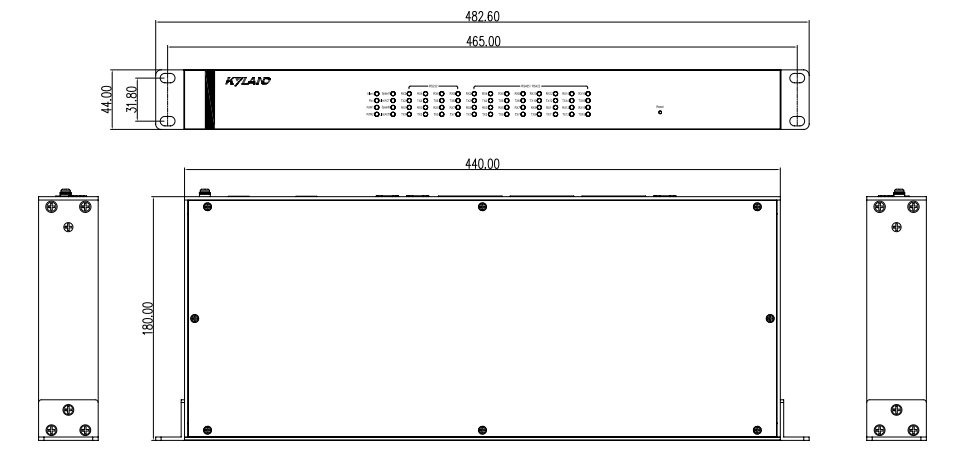 | 機(jī)械結(jié)構(gòu) | 外殼:金屬材質(zhì) 尺寸:483mm×44mm×200mm(W×H×D) 包裝尺寸:570mm×325mm×445mm 散熱方式:自然冷卻,無風(fēng)扇 防護(hù)等級:IP40 安裝方式:19英寸1U機(jī)架式 |