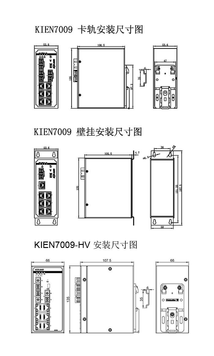 KIEN7009網(wǎng)管型交換機(jī)是一款低功耗綠色工業(yè)以太網(wǎng)產(chǎn)品,支持3個百兆光口和6個百兆電口。KIEN7009支持DT-Ring協(xié)議族(自愈時間<50ms),DRP/DHP(自愈時間<20ms),VLAN等二層軟件特性,并支持CLI、Telnet、Web多種管理方式以及基于SNMPv1/v2c/v3的網(wǎng)管軟件。其IP40防護(hù)的金屬外殼,抗強(qiáng)振動的卡軌座,極端環(huán)境溫度適應(yīng)能力及良好的EMC電磁兼容性能,使該系列產(chǎn)品具備在惡劣工業(yè)環(huán)境下穩(wěn)定可靠工作的能力。該產(chǎn)品已通過CE,F(xiàn)CC,UL508,CID2認(rèn)證,目前已廣泛應(yīng)用于風(fēng)電,配網(wǎng),交通,石油石化等工業(yè)領(lǐng)域。