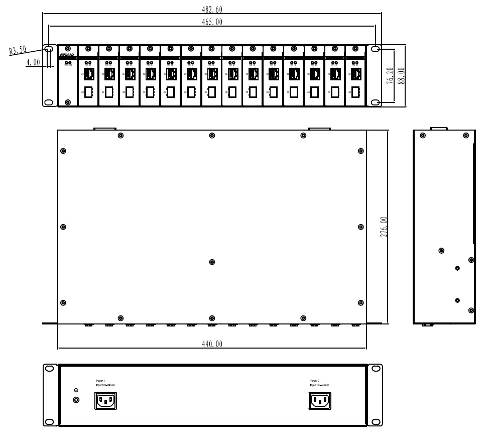 | 機械結(jié)構(gòu) | 外殼 金屬材質(zhì) 散熱方式 自然冷卻,無風扇 防護等級 IP40 尺寸 440mm×88mm×276mm (W×H×D) 重量 8kg 安裝方式 機架式 |