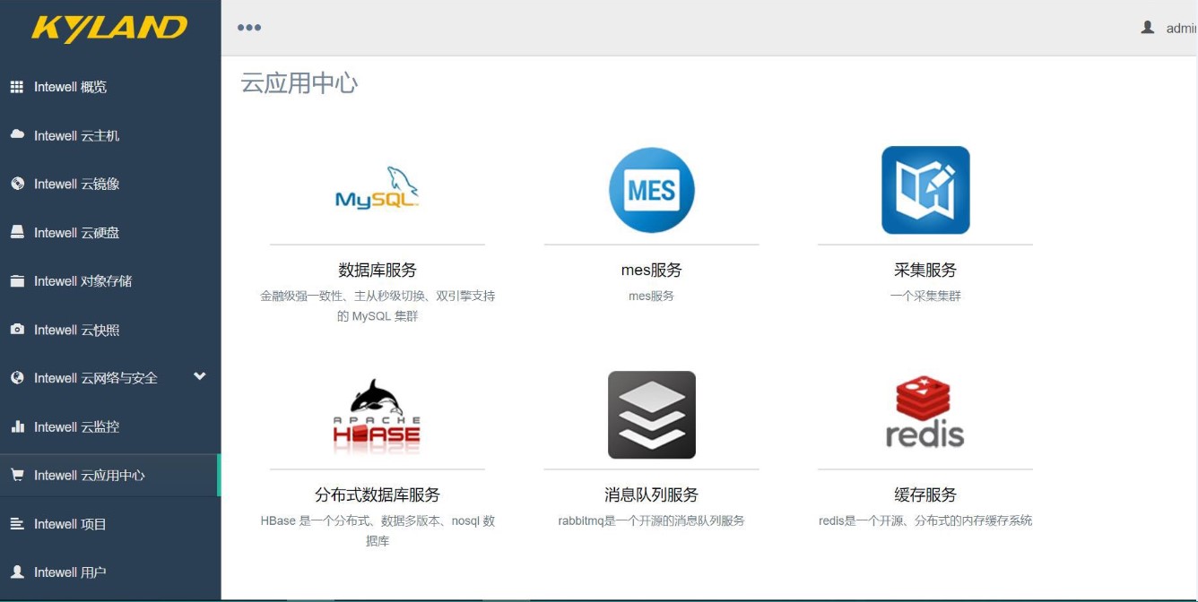 | 云應(yīng)用中心 (可選) | 支持中間件及應(yīng)用在云應(yīng)用中心統(tǒng)一展示 支持中間件及應(yīng)用一鍵式部署:用戶只需一鍵點擊應(yīng)用,即可獲取相應(yīng)資源,直接部署在云平臺中供使用。 應(yīng)用包括: 支持關(guān)系型數(shù)據(jù)庫mysql 5.7,支持?jǐn)?shù)據(jù)庫集群功能。 支持文檔數(shù)據(jù)庫mongdodb, 支持應(yīng)用用戶統(tǒng)一權(quán)限管理 支持ftp文件傳輸應(yīng)用:http訪問方式 支持列式數(shù)據(jù)庫HBase 支持 kafka 消息隊列 支持 mqtt 消息隊列 支持預(yù)裝東土KyVista全景可視化組態(tài)軟件 支持預(yù)裝東土KyMOM制造執(zhí)行系統(tǒng) 支持預(yù)裝東土AHM資產(chǎn)健康管理 支持預(yù)裝東土NMS綜合網(wǎng)絡(luò)管理 支持預(yù)裝東土ICMS工業(yè)計算機(jī)管理系統(tǒng) ![]() |