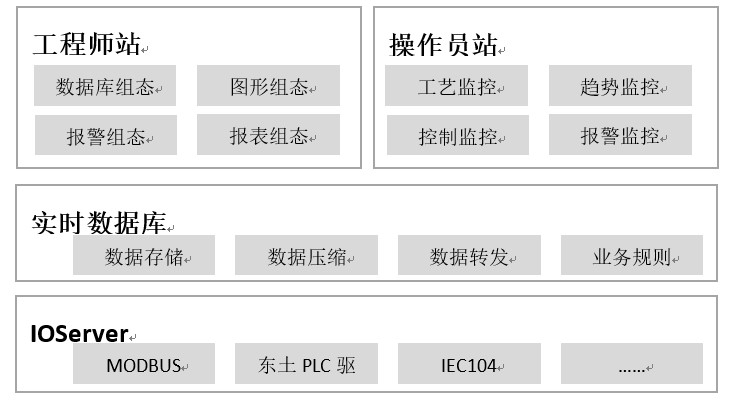 KySCADA工業(yè)互聯(lián)網(wǎng)人機監(jiān)控平臺是東土Intewell工業(yè)互聯(lián)網(wǎng)操作系統(tǒng)的一個重要組成部分,與東土工業(yè)服務器、MaVIEW結(jié)合,為用戶提供軟、硬件一體的工業(yè)現(xiàn)場解決方案。KySCADA通過IOServer接入現(xiàn)場設備將數(shù)據(jù)統(tǒng)一存儲到實時數(shù)據(jù)庫進行合并分析與處理,由實時數(shù)據(jù)庫作為整個系統(tǒng)的核心數(shù)據(jù)交換中心,與工程師站、操作員站、IOServer進行通訊。