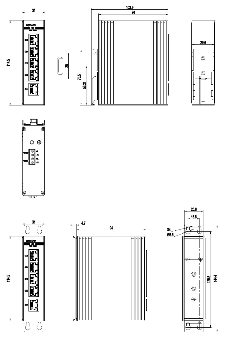 | Opal5G-5GE-LV-LV | 5×10/100/1000Base-T(X) RJ45電口 | 12-48VDC/18-30VAC, 冗余輸入 |