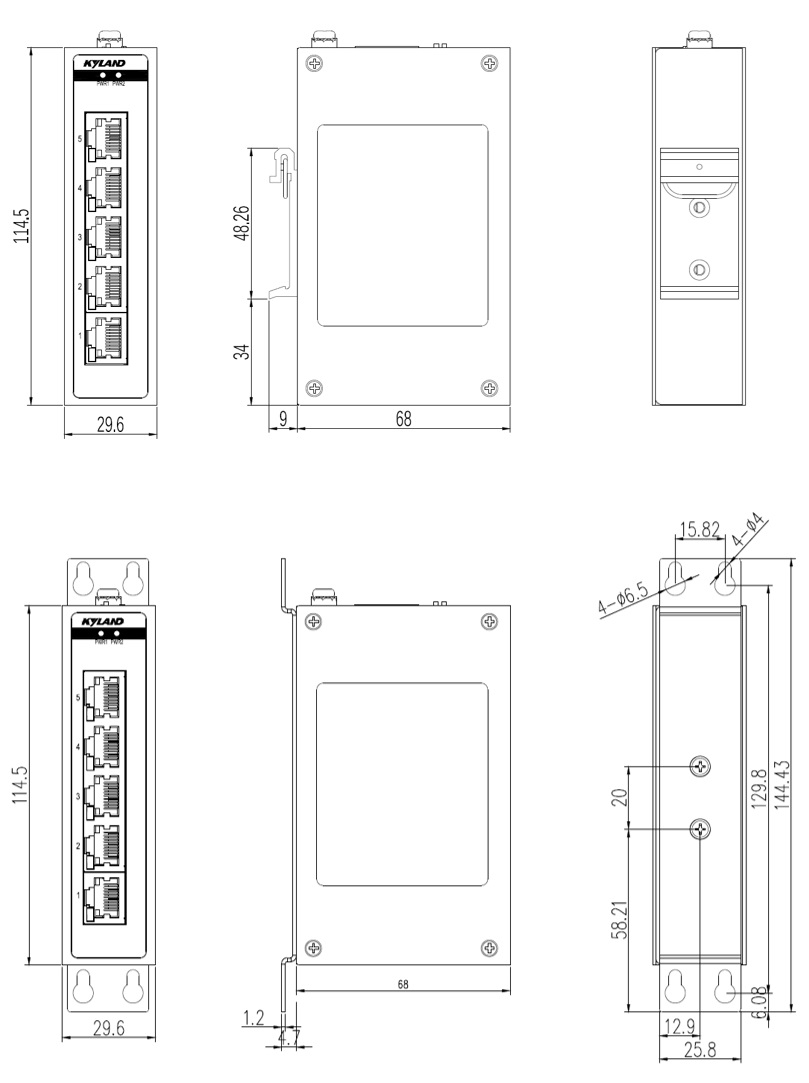 | 機(jī)械結(jié)構(gòu) | 外殼 金屬材質(zhì) 散熱方式 自然冷卻,無風(fēng)扇 防護(hù)等級(jí) IP30 尺寸 29.6mm×114.5mm×68mm (W×H×D) 重量 0.2Kg 安裝方式 DIN卡軌式或壁掛式 |