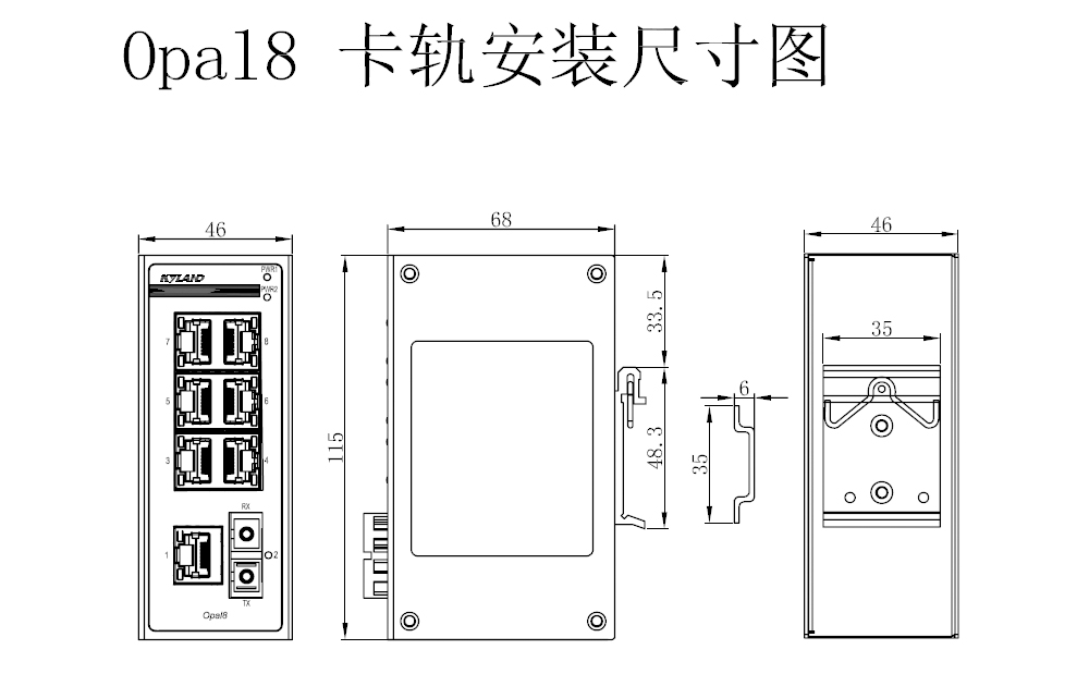 | 機械結構 | 外殼 金屬材質 散熱方式 自然冷卻,無風扇 防護等級 IP30 尺寸 46mm×115mm×68mm(W×H×D) 重量 0.3Kg 安裝方式 DIN卡軌式或壁掛式 |
